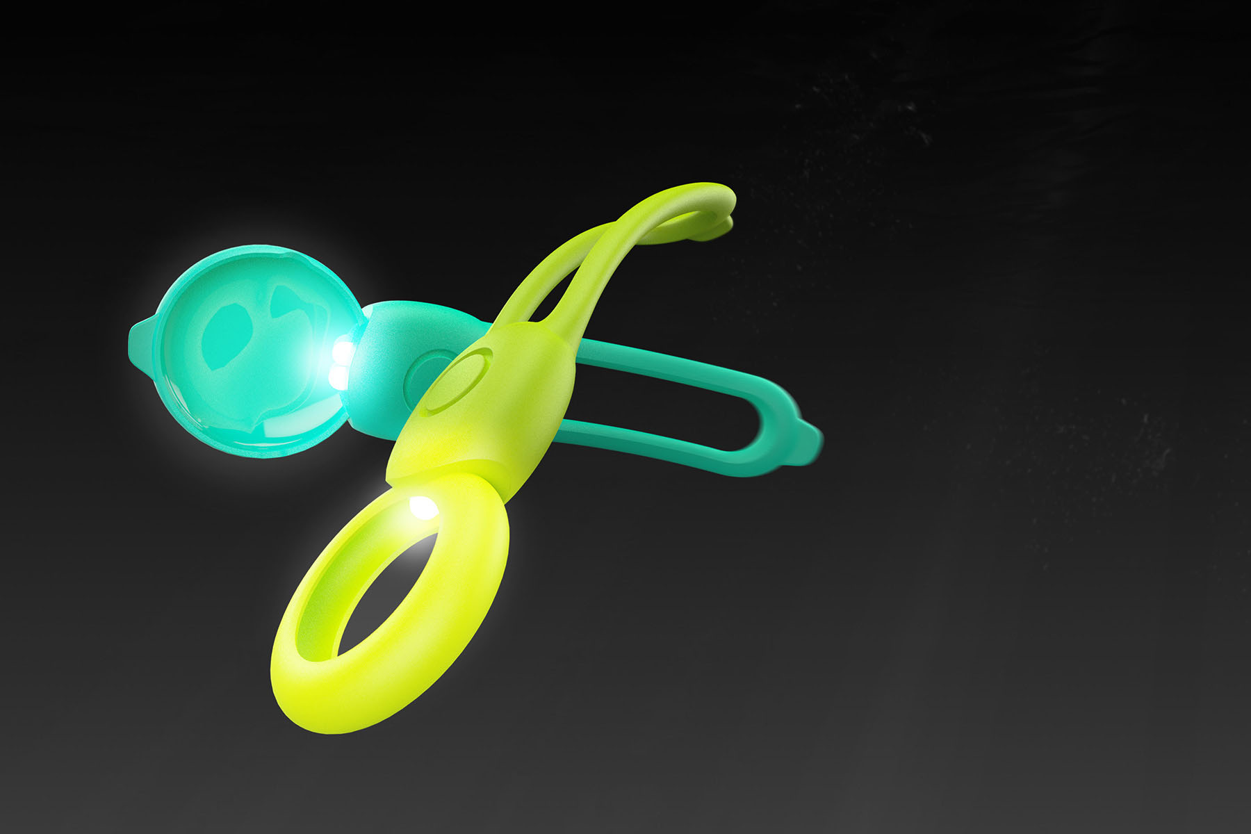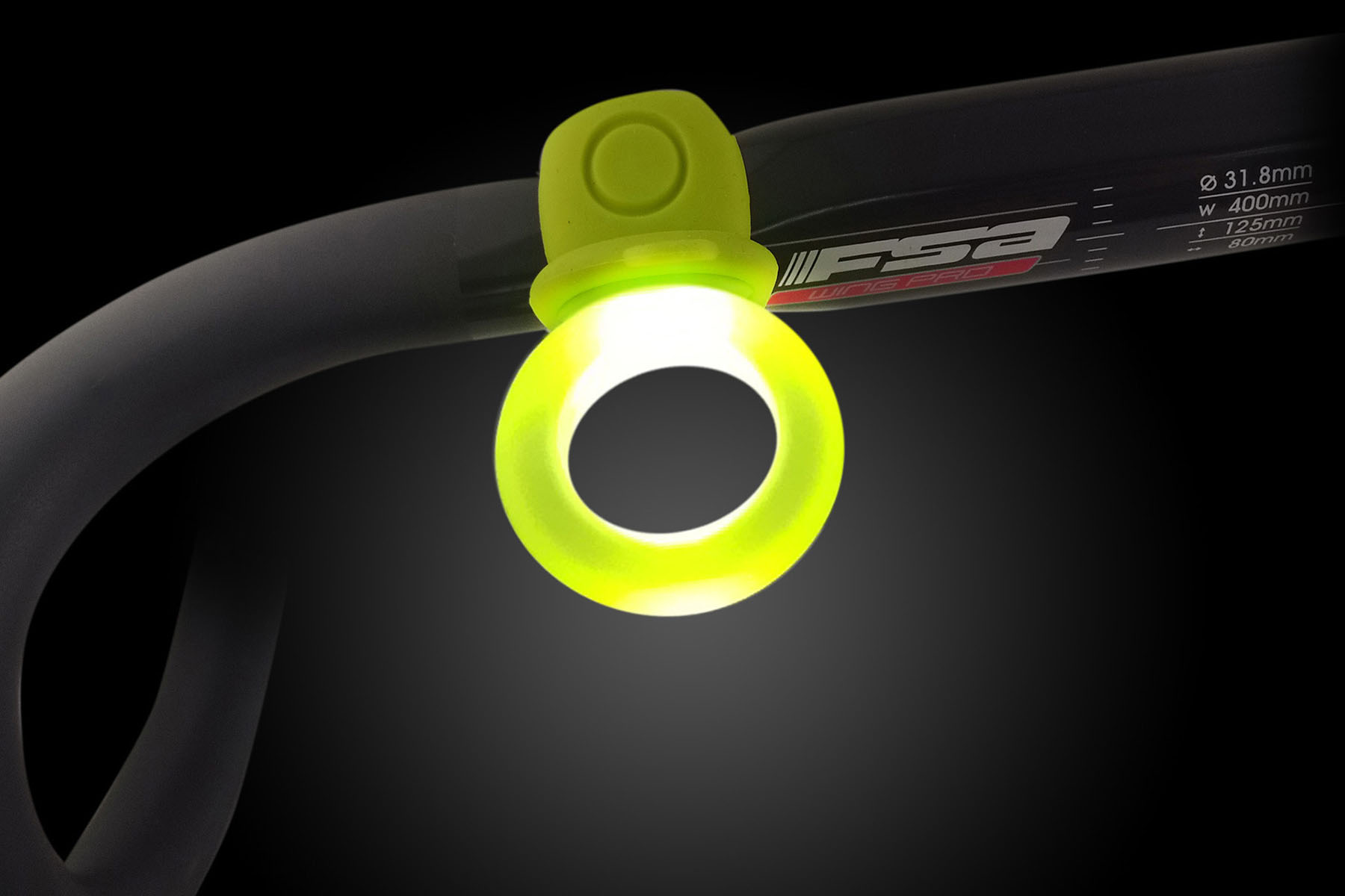 Bicycle companion with dual-mode lighting. Default mode enhances the light diffusion across the halo shape to maximize visibility. Folding the halo transforms the light to a directional light.
