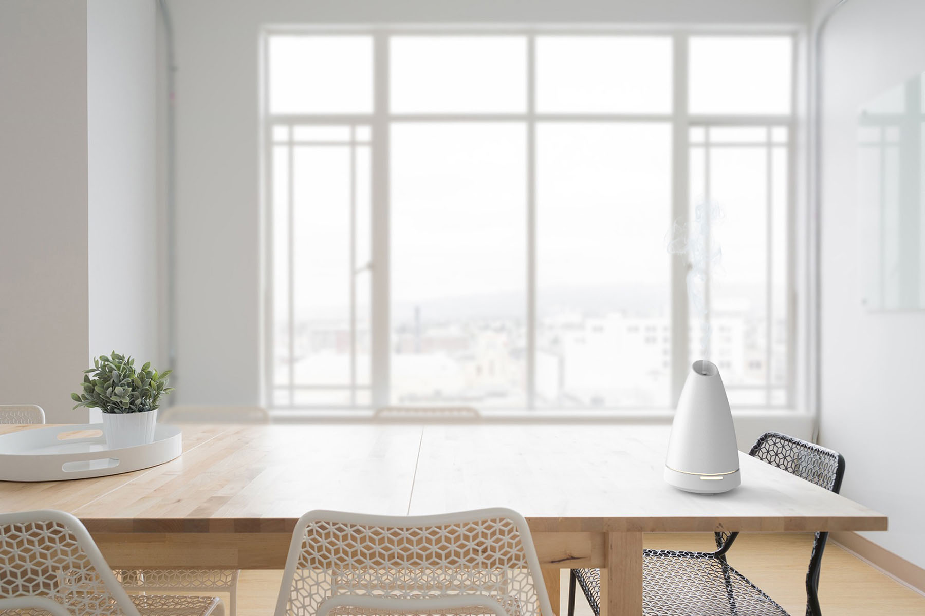 Aroma diffuser designed in low-profile to blend into general households. The minimalistic design is universal for all interiors without interference.